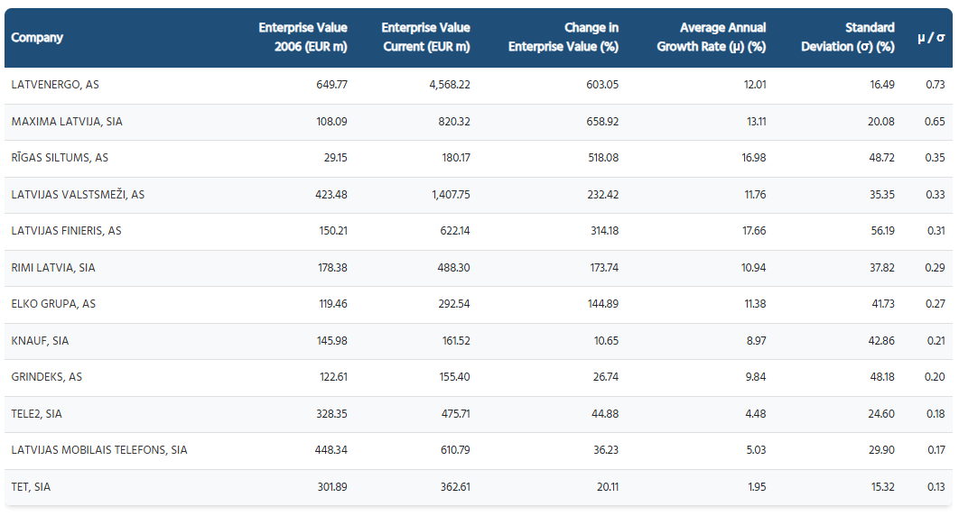 Based on this indicator — which can be described as a modified Sharpe ratio - AS Latvenergo has shown the best performance, with the highest coefficient of 0.73.